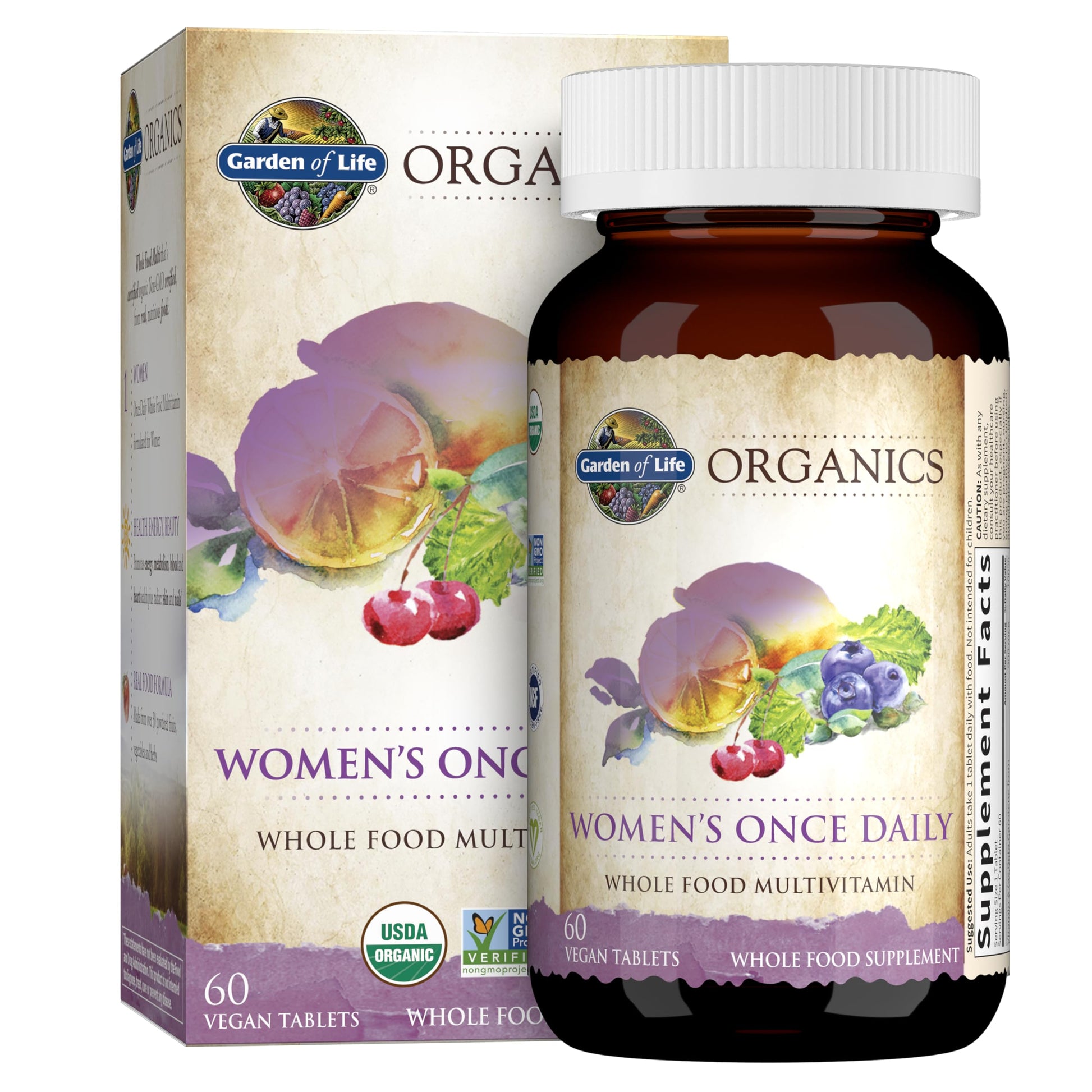 Details: Finally, it’s here—a whole food multi from real, nutritious foods that’s Certified USDA Organic, Non-GMO Project Verified and is specifically formulated in a once-daily dose for the needs of women: Garden of Life Organics Women’s Once Daily. Made from over 30 powdered organic fruits, vegetables and herbs, Organics Women’s Once Daily offers numerous vitamins and including great levels of B vitamins for radiant skin and nails.† It also provides vitamin B-12 in methylcobalamin form—a highly absorbable, active, natural form of B-12, like the B-12 in the body.† Women’s Once Daily also delivers vegan D3 from lichen for immune support and 2.5mg of iron for blood support.† Women’s Once Daily is made from real organic whole food, including lemons, annatto, amla berry, holy basil and many more—providing perfect support for your demanding lifestyle—all in just one organic tablet daily.† Garden of Life Organics Women’s Once Daily—a Certified USDA Organic, Non-GMO Project Verified women’s multivitamin once-daily formula made from certified organic whole foods, for women’s health, energy and beauty.† †These statements have not been evaluated by the Food and Drug Administration. This product is not intended to diagnose, treat, cure or prevent any disease.