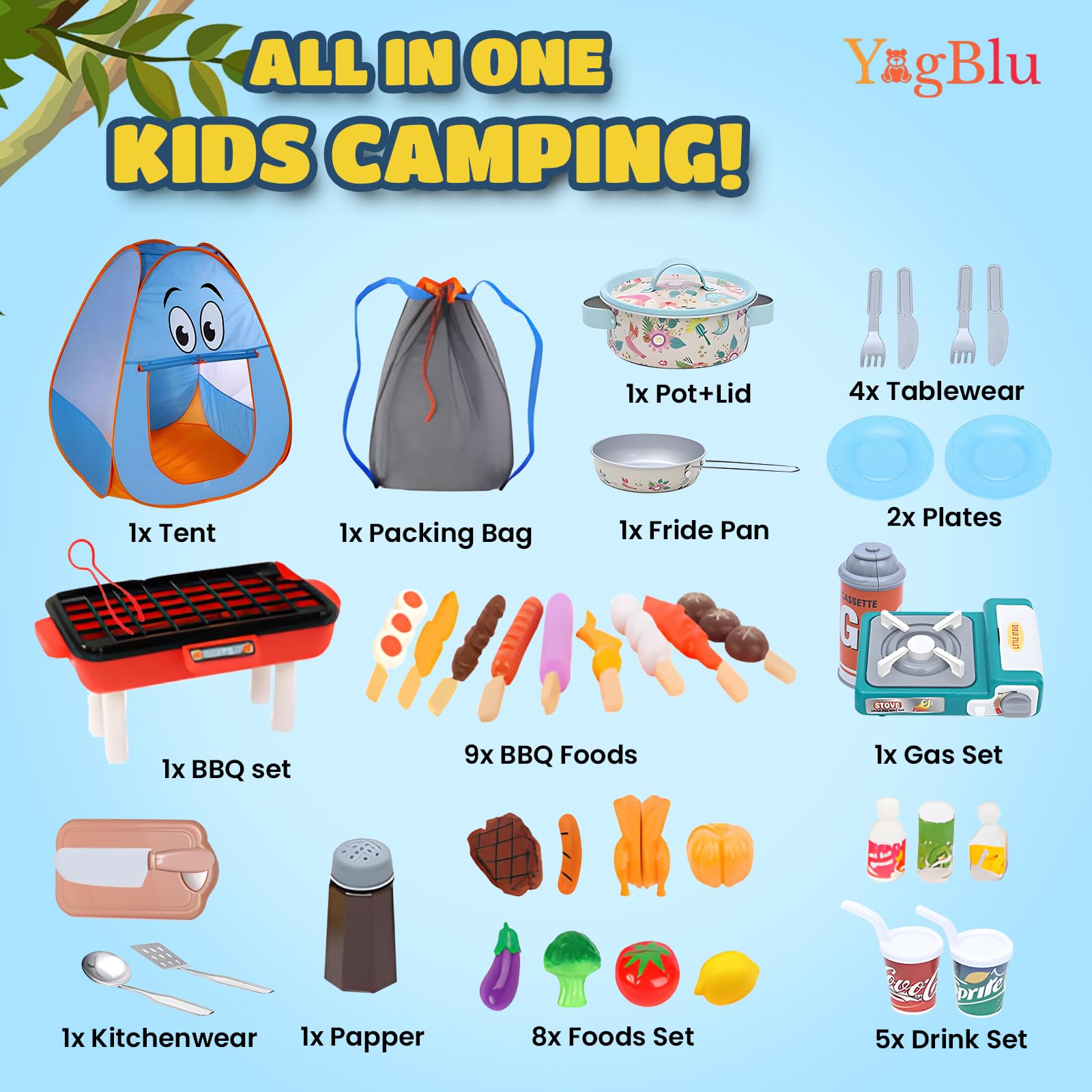 - 🏕️ sports & outdoor play toys, with this valuable Kids camping toy from YOGBLU we will be helping our children to enter from an early age into a world full of colors that today millions of children do not know exists due to the technology that takes over their minds and making them increasingly dependent on it, that is why we offer you through this camping set for Kids that you give your children the opportunity to live a childhood full of joy, love, aromas and colors like the ones you experienced as a child. @ in your childhood.
