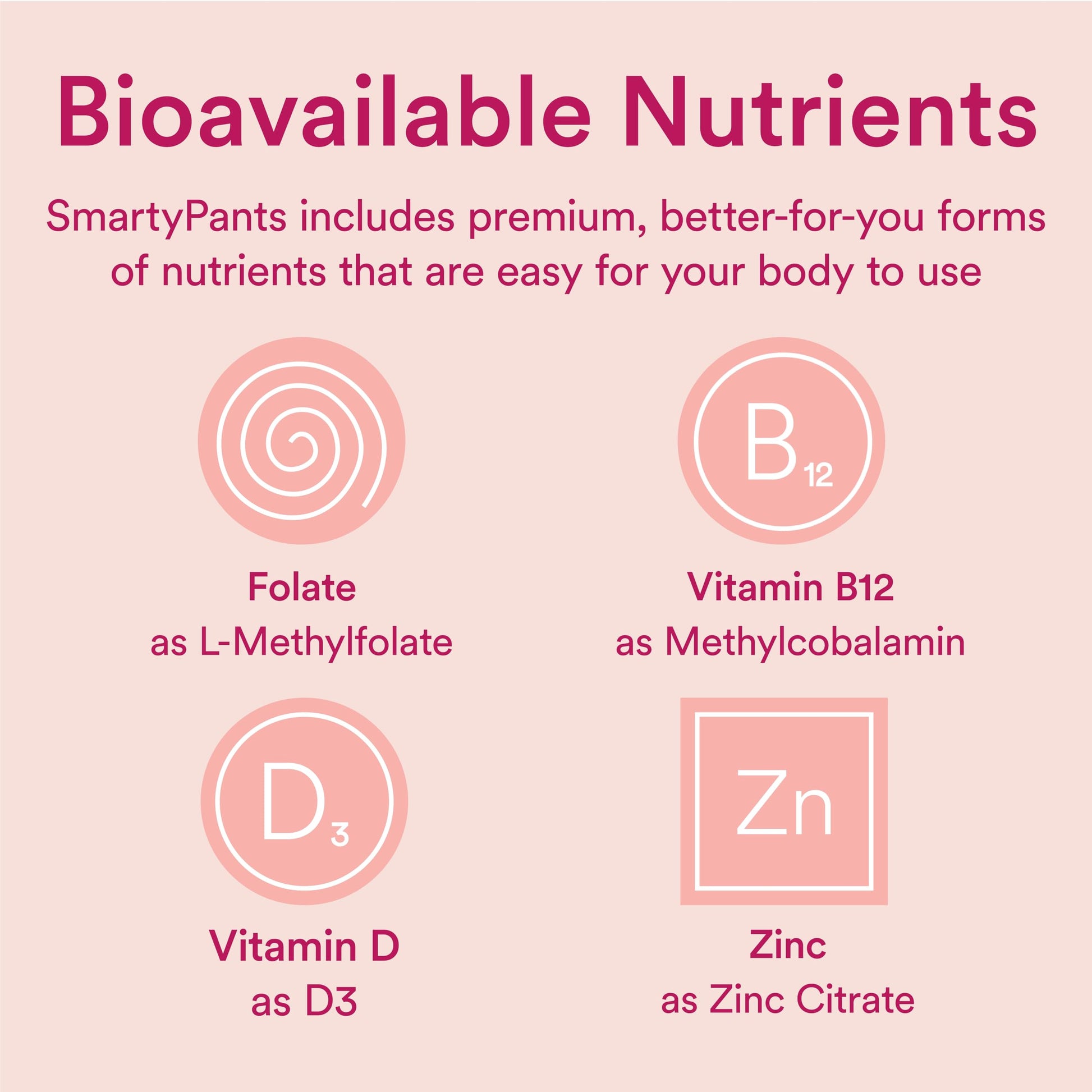 - BETTER NUTRIENT SOURCES: We include bioavailable forms of high-quality nutrients that are easy for your body to absorb like vitamin B12 as methylcobalamin, zinc citrate, vitamin D as D3, and folate as methylfolate