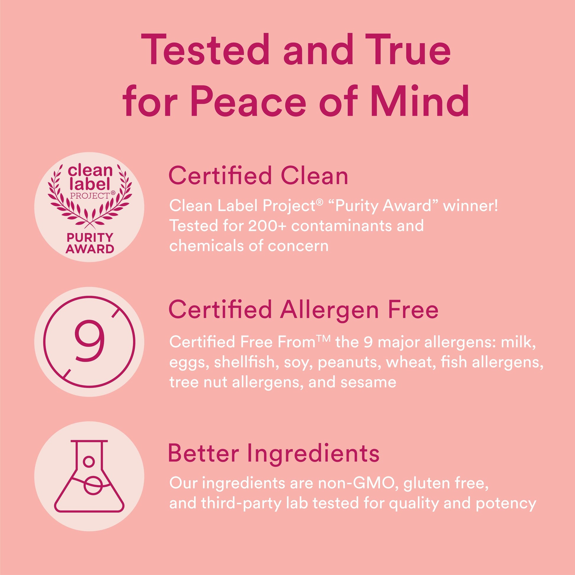 - CERTIFIED CLEAN, 3RD PARTY TESTED FORMULA: Our prenatal vitamins are a Clean Label Project Purity Award Winner! Subjected to strict testing for 200+ contaminants and chemicals, you can be sure you're giving your family high quality vitamins you can trust