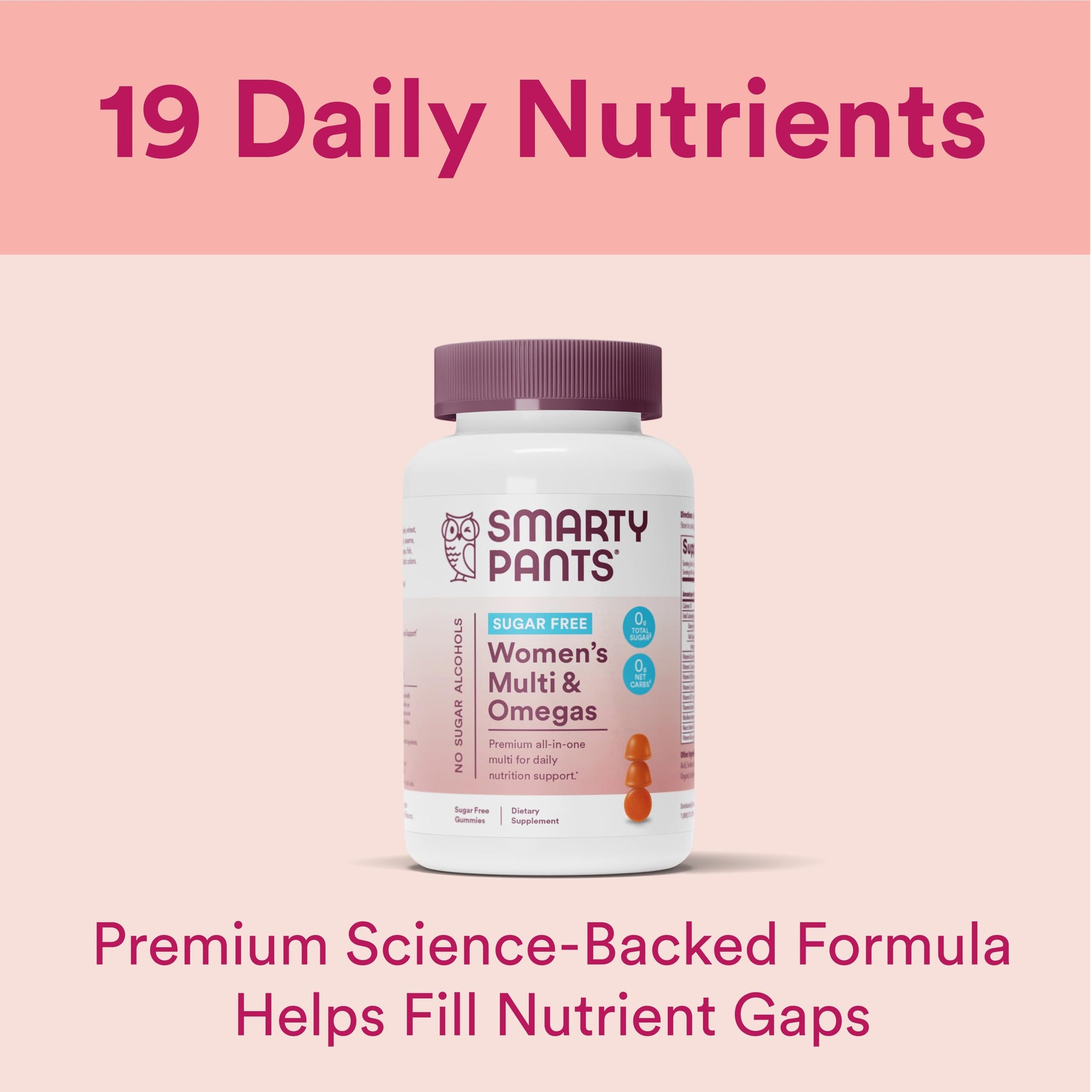 - PREMIUM, SCIENCE-BACKED SUGAR-FREE GUMMY MULTIVITAMIN FOR WOMEN: SmartyPants Sugar-Free Women’s Multi & Omegas is specifically formulated to help fill nutritional gaps in the average diet